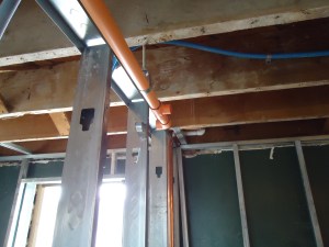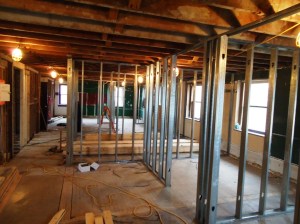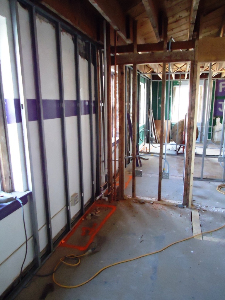 Late last week we received our building permit from the City of Lincoln. This week the contractors are finishing up the electrical and plumbing rough-ins to allow for insulation and drywall can start next week.