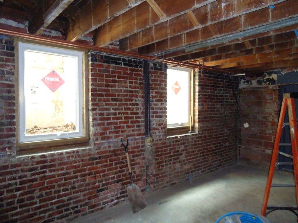 Dramatic changes this week – new windows were installed on the north, east and west side of the 1931 building.  The new windows will significantly improve the energy efficiency of the chapter house.  The existing windows were installed decades ago and had outlived their useful life.  Many of old window vinyl tracks had degraded to the point where it was a battle to keep the windows closed.  New windows are being installed in the entire building – from the 4th floor to the basement.