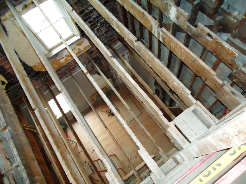 Finally, a new subfloor was installed on the 4th floor. Several of the old floor boards were very thin or cracked. In addition, this separation was required for fire codes.